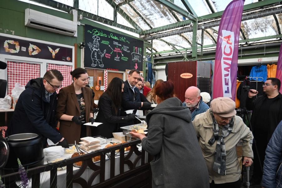 Wśród świątecznych dań nie zabrakło żurka z jajkiem, sałatki jarzynowej, sałatki wielkanocnej oraz typowych ciast wielkanocnych. Poczęstunek, jak co roku, cieszył się dużym zainteresowaniem łodzianek i łodzian, dokonujących ostatnich przedświątecznych zakupów.
