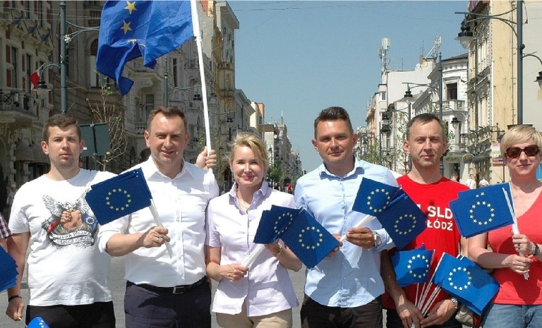 Politycy i działacze łódzkiego SLD nie zapomnieli o Dniu Unii Europejskiej. Wspólnie z przedstawicielami Nowoczestnej rozdawali mieszkańcom Łodzi flagi unijne.