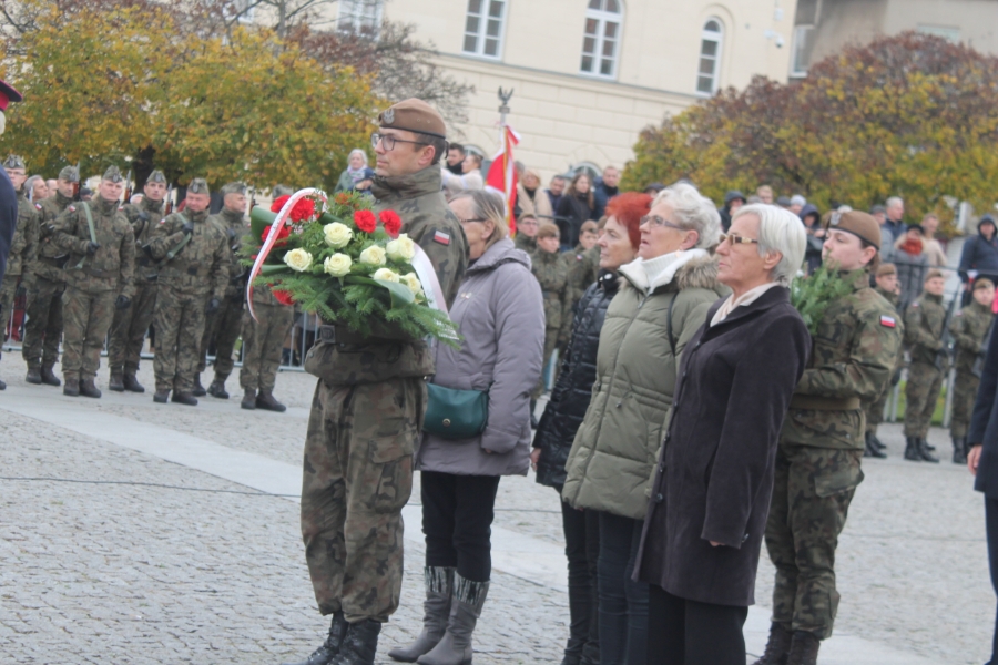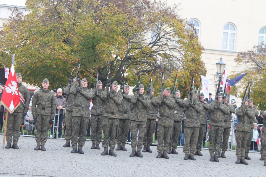wartości patriotyczne umacniające narodową wspólnotę, tak ważną w sytuacji zagrożenia zewnętrznego . Wiceminister MON Wojciech Skurkiewicz podkreślił, że tegoroczne obchody ŚwiętaNiepodległości w Polsce odbywają się w cieniu regularnej wojny w Ukrainie. Ta wojna jest tragiczna nie tylko dla żołnierzy, ale również dla ludności cywilnej. Wolność trzeba więc pielęgnować w każdej chwili naszego życia, wspominając naszych bohaterów – mówił minister. Dodał, że dzisiaj Polak dla Polaka powinien być przyjacielem, wsparciem, ostoją i orężem w